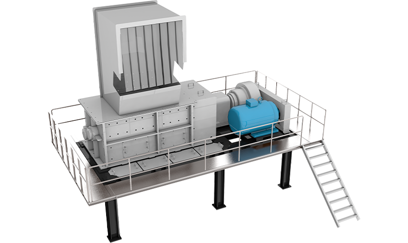 This equipment consists of a reducer, cutter shaft, fixed blades, moving blades, and a shredder chamber. Material falls into the shredder chamber from the feed hopper. The cutter shaft rotates at low speed, crushing the material through shearing and tearing. Additionally, a pushing device presses the material against the cutter shaft, further increasing crushing efficiency. During the crushing process, material smaller than the screen openings is discharged through the screen and enters subsequent processes; material larger than the screen openings returns to the chamber for repeated crushing via a rotary screen until the material meets the required size before being discharged.