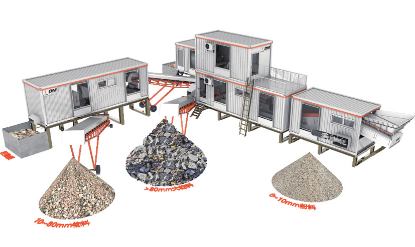 Precision sorting Module: Intelligence-enhanced optical sorters perform identification and ejection of residual contaminants in 10-80mm materials, achieving <5% impurity content. Final output: 0-10mm fine aggregates; 80mm purified coarse aggregates (optionally crushed via impact crusher); Ferrous metals; Lightweight fractions.